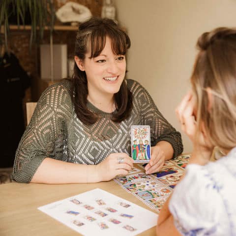 Avec votre date de naissance et les cartes de tarot, je calcule vos maisons et les aspects particuliers de votre thème. En utilisant le langage universel de ces images et leur pouvoir métaphorique et narratif, vous verrez comment vous projetez à l’extérieur, votre grille de lecture personnelle du monde. Ainsi, vous pouvez mieux identifier vos mécanismes de défense ainsi que les injonctions familiales, sociétales ou culturelles auxquelles vous obéissez le plus souvent inconsciemment et qui vous bloquent dans votre évolution. Vous découvrez également les ressources insoupçonnées qui dorment en vous.